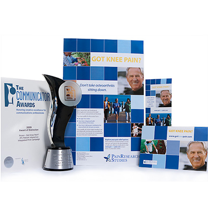 I art directed and designed the logo and 19 print marketing collateral for hospitals involved in the national clinical trial for the pharmaceutical development company POZEN's Got Knee Pain. This campaign resulted in the recruitment of 1,000 qualified patients and the FDA approval. I received my first award for my efforts - Communicator Award of Distinction (silver).