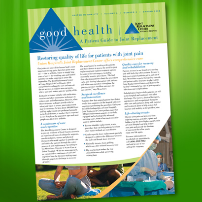 While created newsletters for hospitals around the country, I was recognized with a Silver Aster Award on the design and layout for Union Hospital's Good Health monthly newsletters.